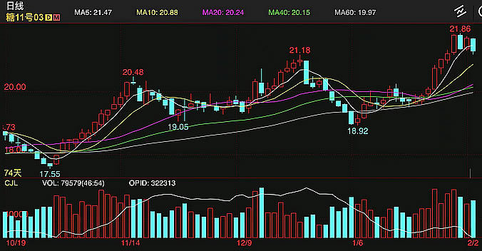 YNTW.COM 2月4日消息,本周外盘洲际交易所(ICE)原糖期货冲高回调,周三达到六年以来的新高21.86美分,随后回调整理,周五ICE 主力3月原糖期货合约下跌0.42美分,跌幅1.9%,结算价报每磅21.24美分。