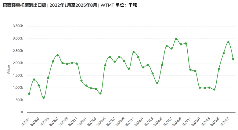 桑托斯港的强劲表现凸显了巴西作为全球最大食糖出口国的地位,但今年以来食糖出口量同比下降,其中9月份前四周巴西出口食糖291.6万吨,同比上年同期下降21%,总收入11.61亿美元,同比上年同期下降31%,呈现出几个月以来的量价齐跌态势。
