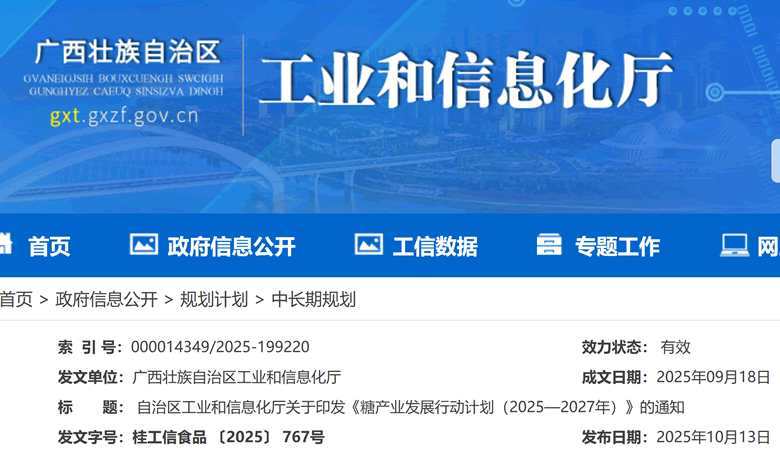 重磅!广西关于印发《糖产业发展行动计划(2025—2027年)》的通知